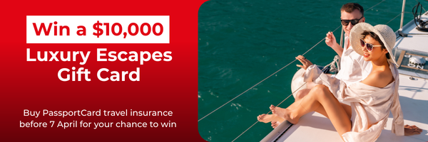 Buy a PassportCard travel insurance policy between 9 March and 7 April 2026, and you’ll automatically go into the draw to win a $10,000 Luxury Escapes gift card.